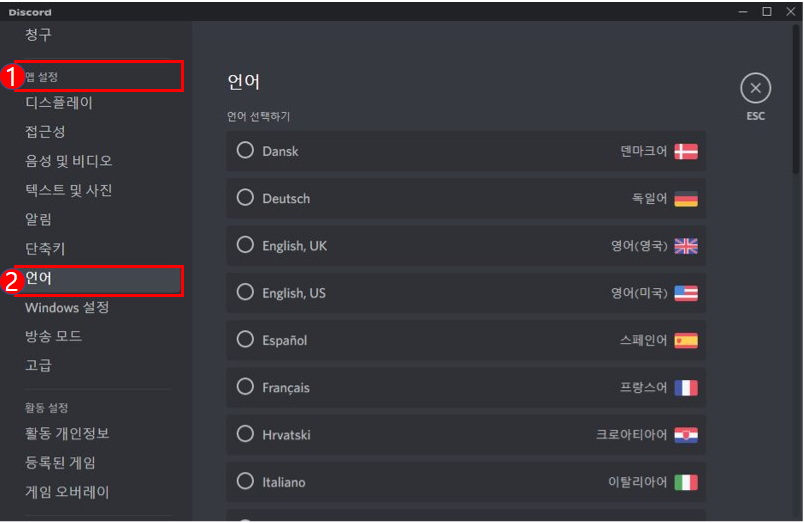 디스코드를 처음 설치를 하게되면 한글로 보이는 분들도 있을 것이고, 영어 또는 다른나라 언어로 보이는 분들이 있을겁니다.